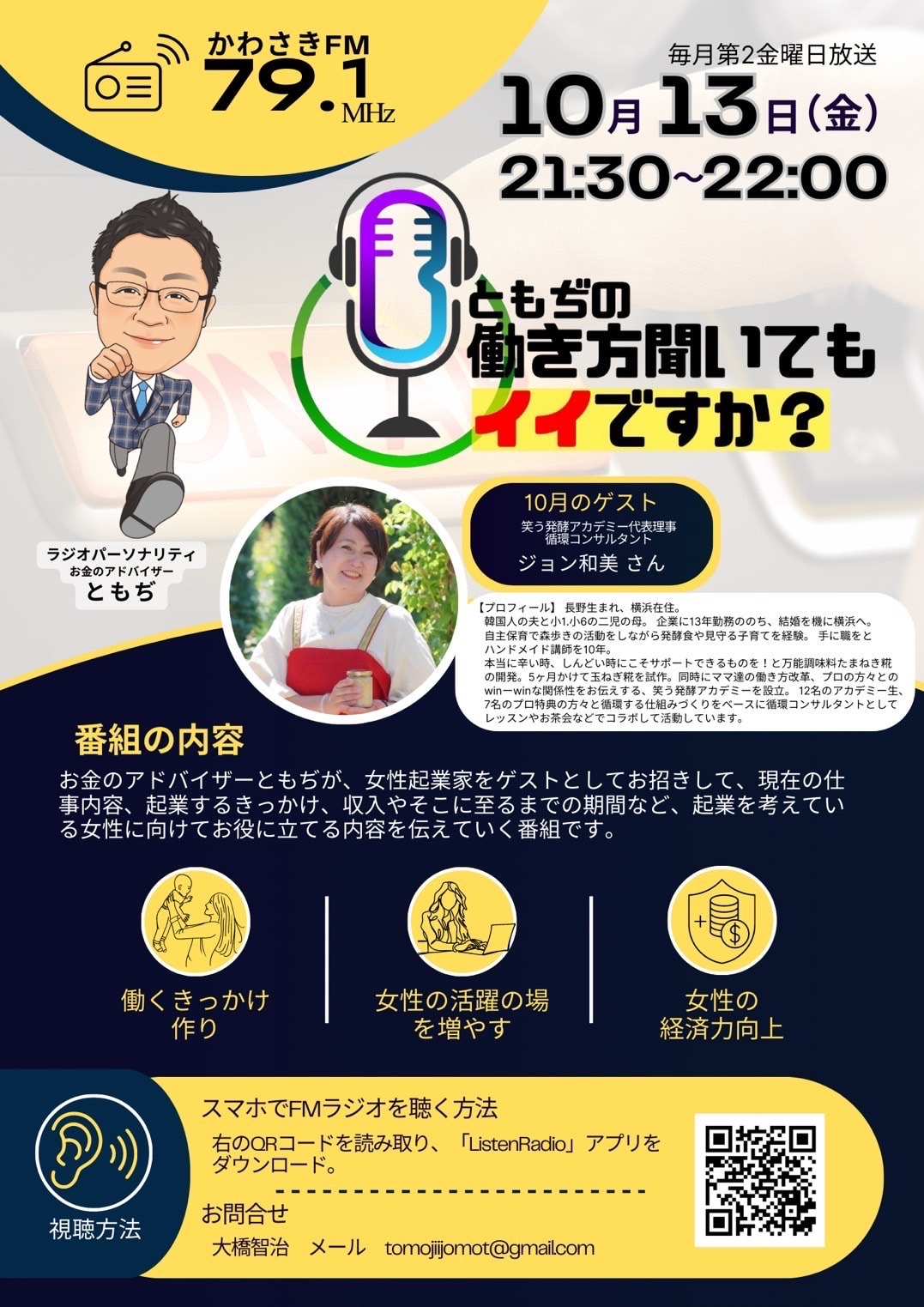本日10月13日金曜日21時30分からFM川崎にラジオ出演させて頂きます。