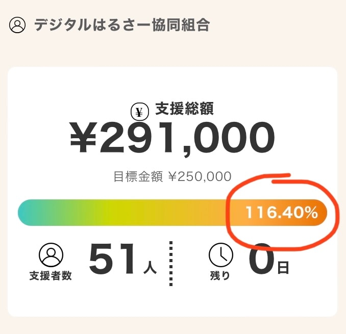 おかげさまで、目標を上回る、291,000円のご支援をいただきました!