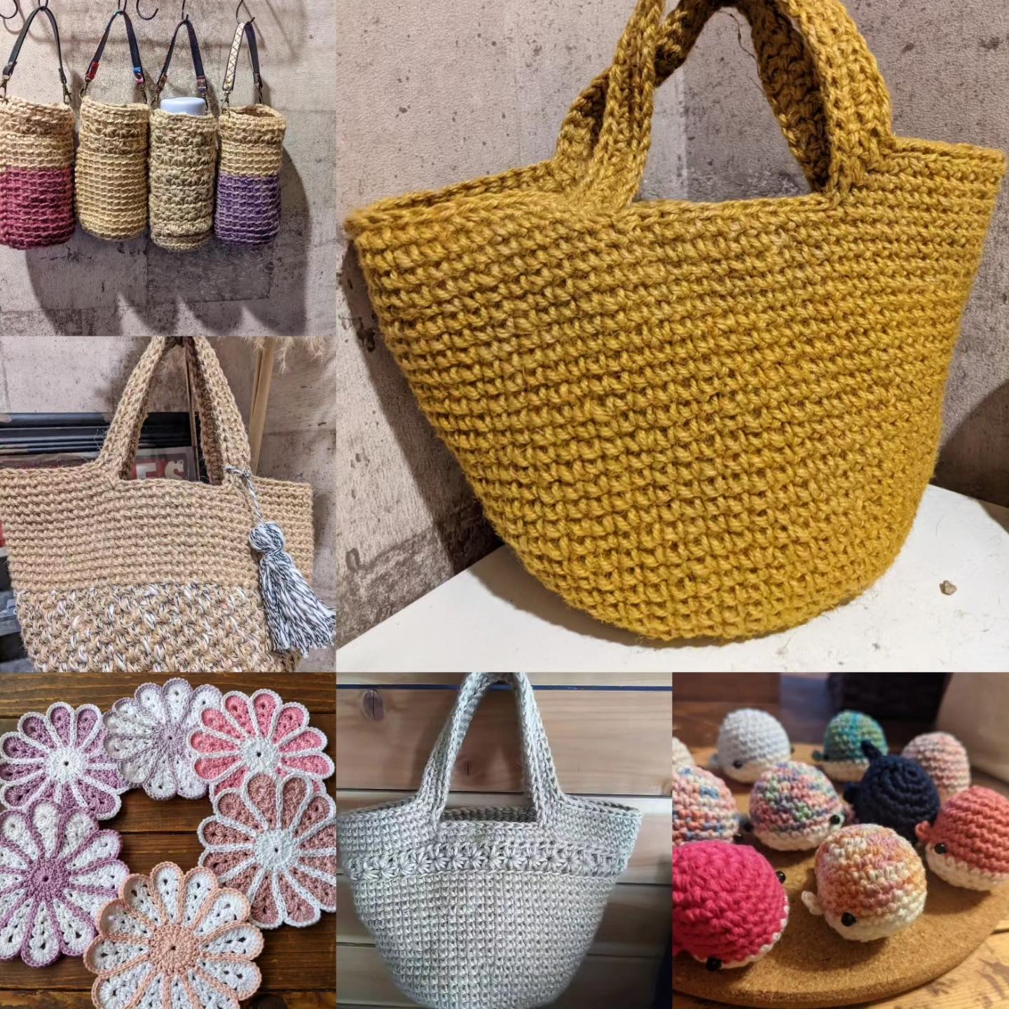 自染めの麻紐で色とりどりの麻バッグや、冬限定の麻✕毛糸のバッグも可愛いのでぜひ遊びに来てください。
