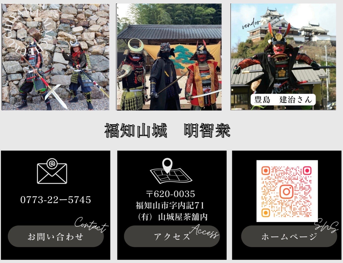 「明智光秀公が築いたまち福知山」を全国に知ってもらうため、「飛び出せ福知山城明智衆」として各地祭への参加やアウトドアーイベントなどで隆はもとより山に川に海に桔梗紋の兜などで出没もしているんです!