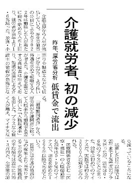どこの企業でも、人材不足が叫ばれていますが、介護の現場に明るい話題が出てくると良いなと、今日の記事をみて思いました。