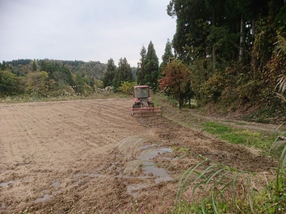 稲刈りが終わったものの、田んぼでは降雪を前に来年に向けた土づくりが進められています。