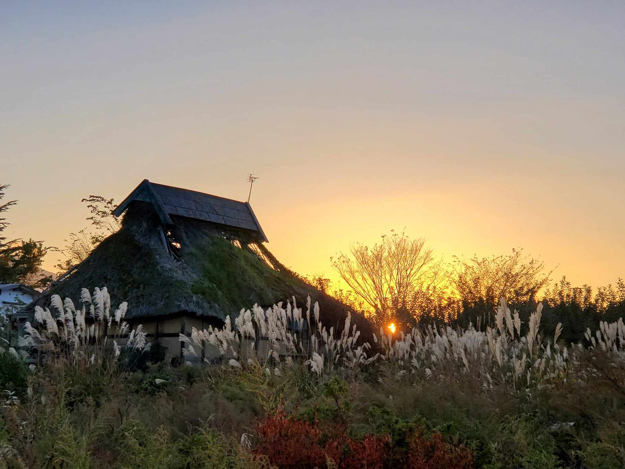 実りの秋、昨日の夕暮れ時。園地から見える”タイムスリップ”したかの様な景色をまずはお届け。