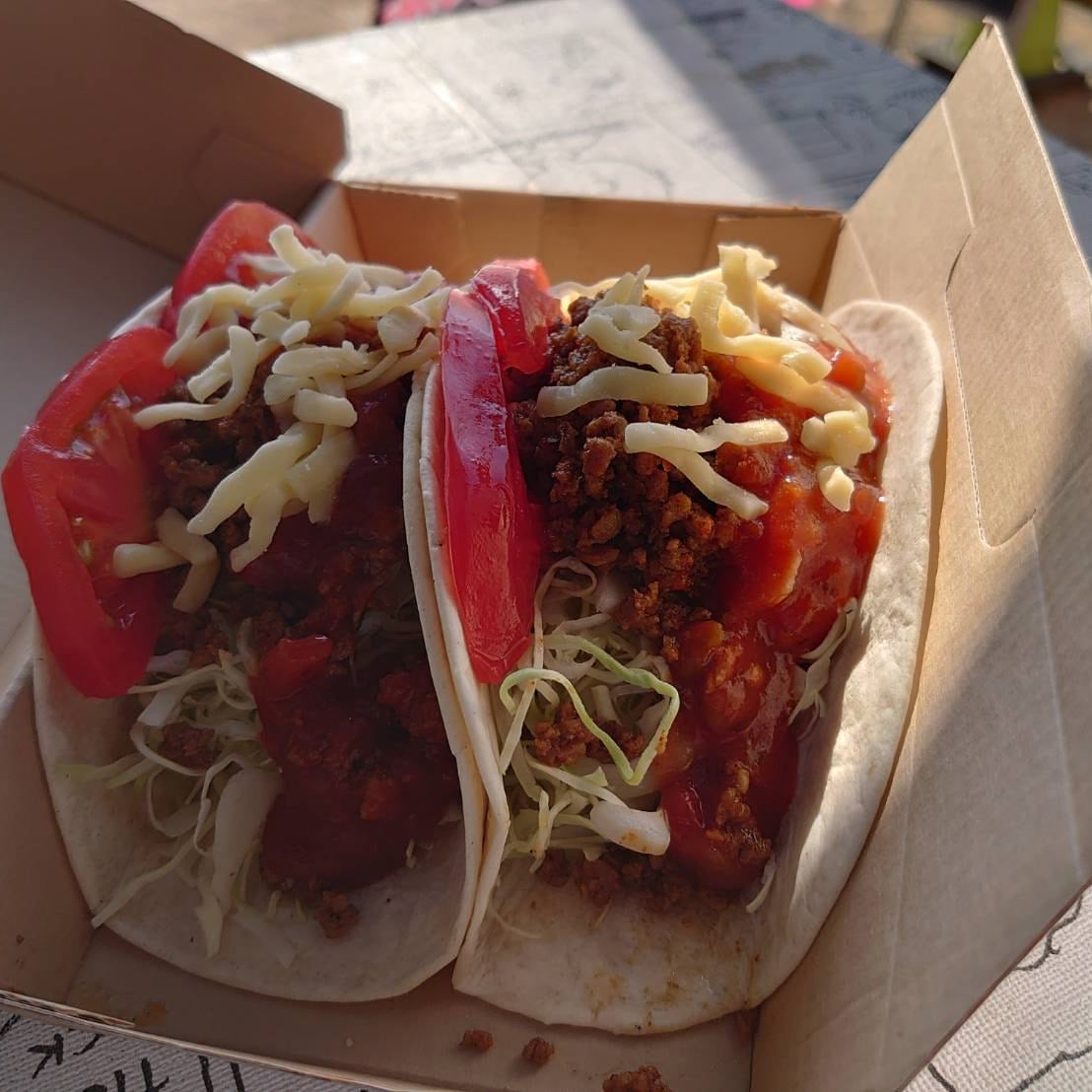 タコスは手作りにこだわったピリ辛なサルサソースと新鮮なキャベツと甘いトマトがマッチング!