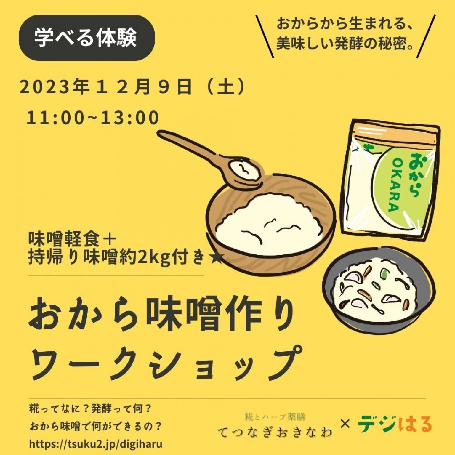 クッキング教室イベントのお知らせです!12月9日(土)11時@八重瀬ハーブ体験工房(八重瀬町当銘297)にて、おからを活用した料理教室イベントを開催致します!