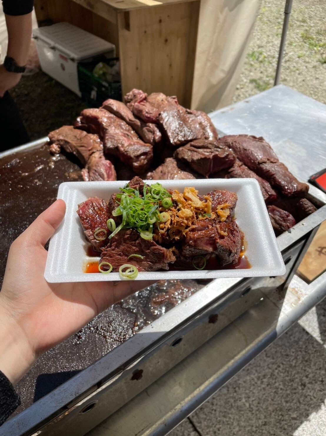 今回ご提供下さるのは1頭の牛から1本しか取れない希少部位「サガリ」を贅沢に使った厚切りステーキ。赤身でジューシーかつ、さっぱりとしたお肉を、秘伝の焼肉のタレと合わせてお召し上がりください🍖