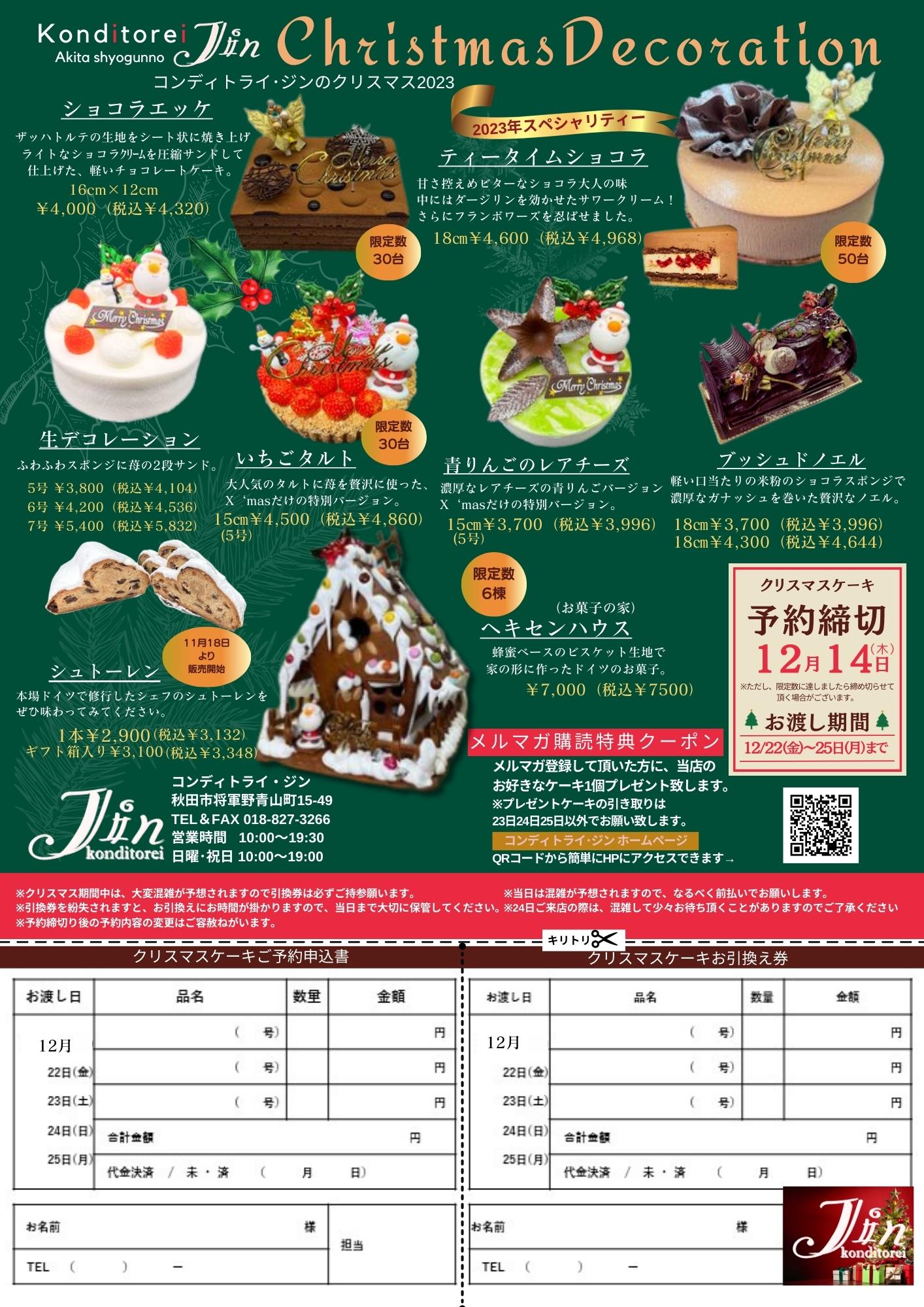 2023クリスマスのパンフレット完成いたしました。