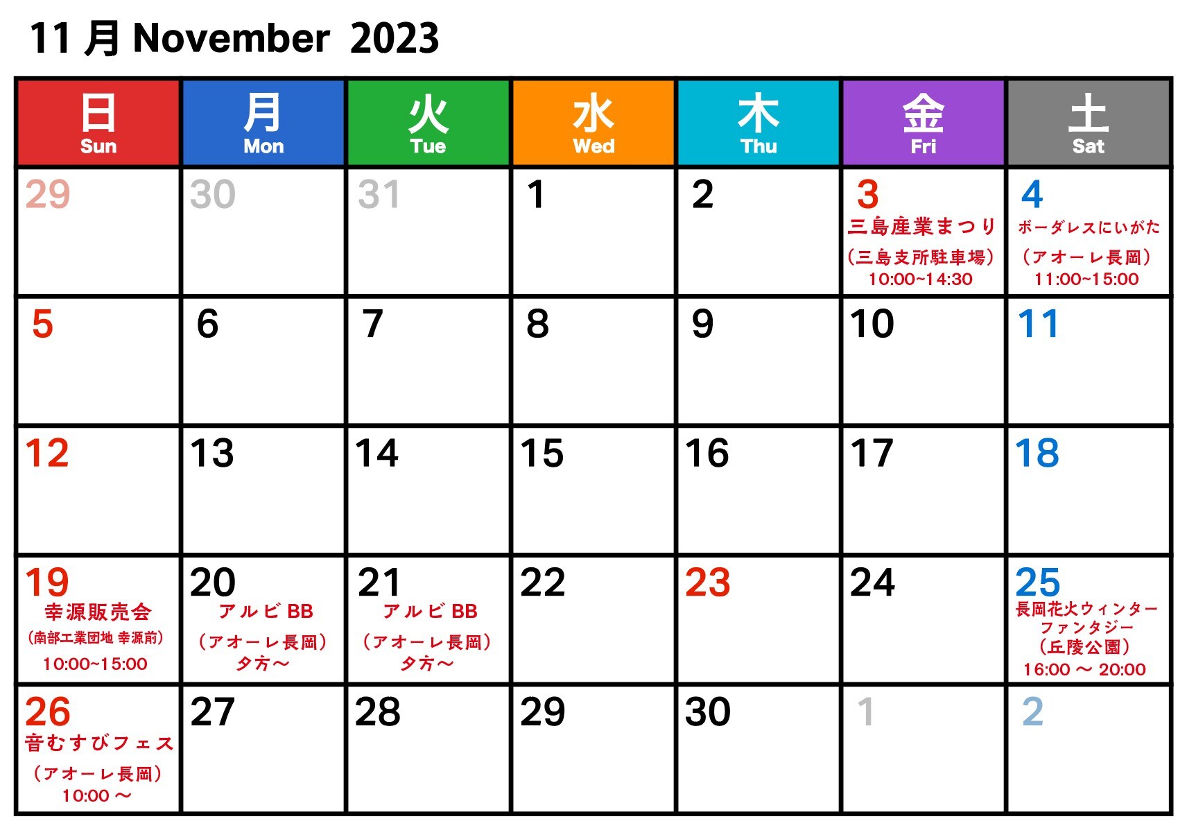 3連休もイベントを楽しもう!11/3 三島産業まつり11/4ボーダレスにいがた出店