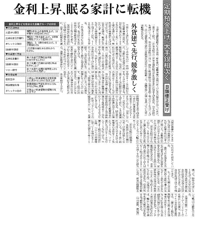 預金金利などが上がっています。