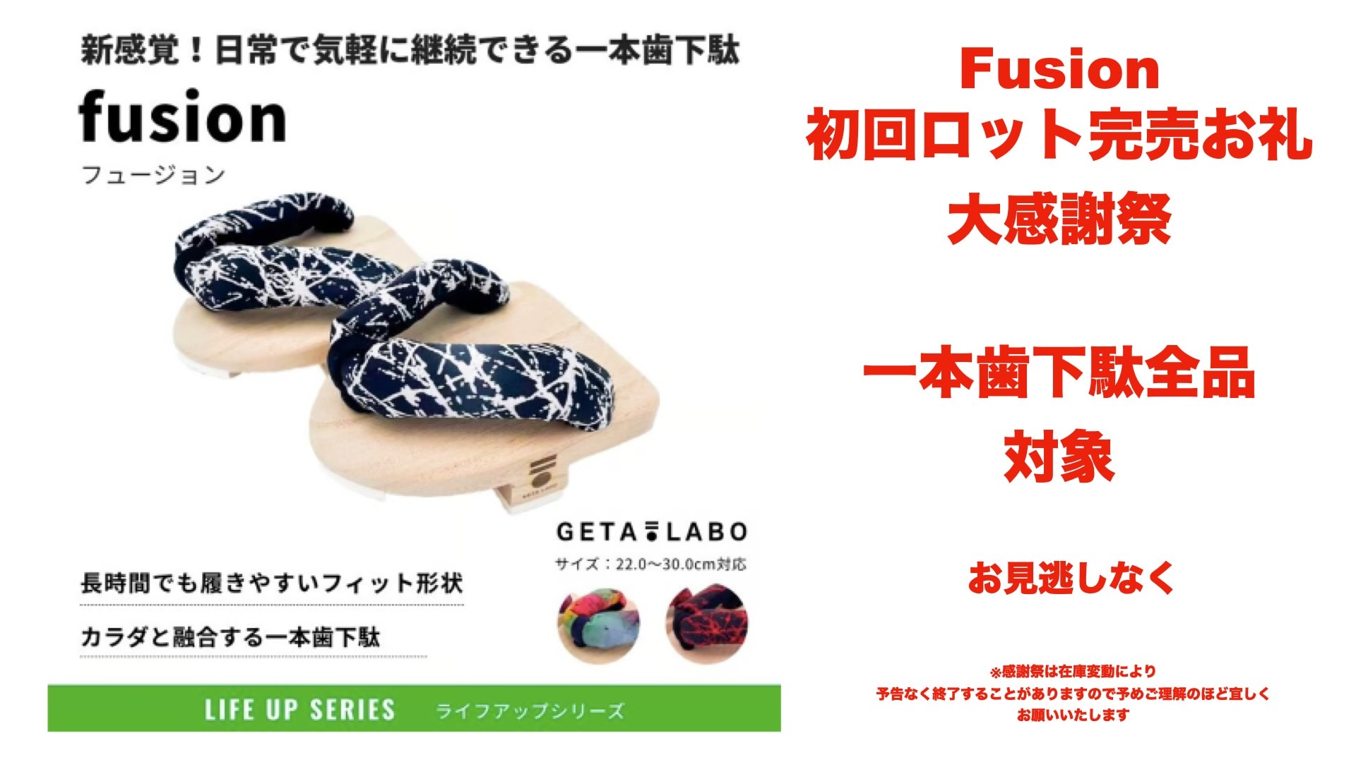 【お知らせ】一本歯下駄【fusion】フュージョン 初回生産分 完売御礼大感謝祭を開催いたします!!