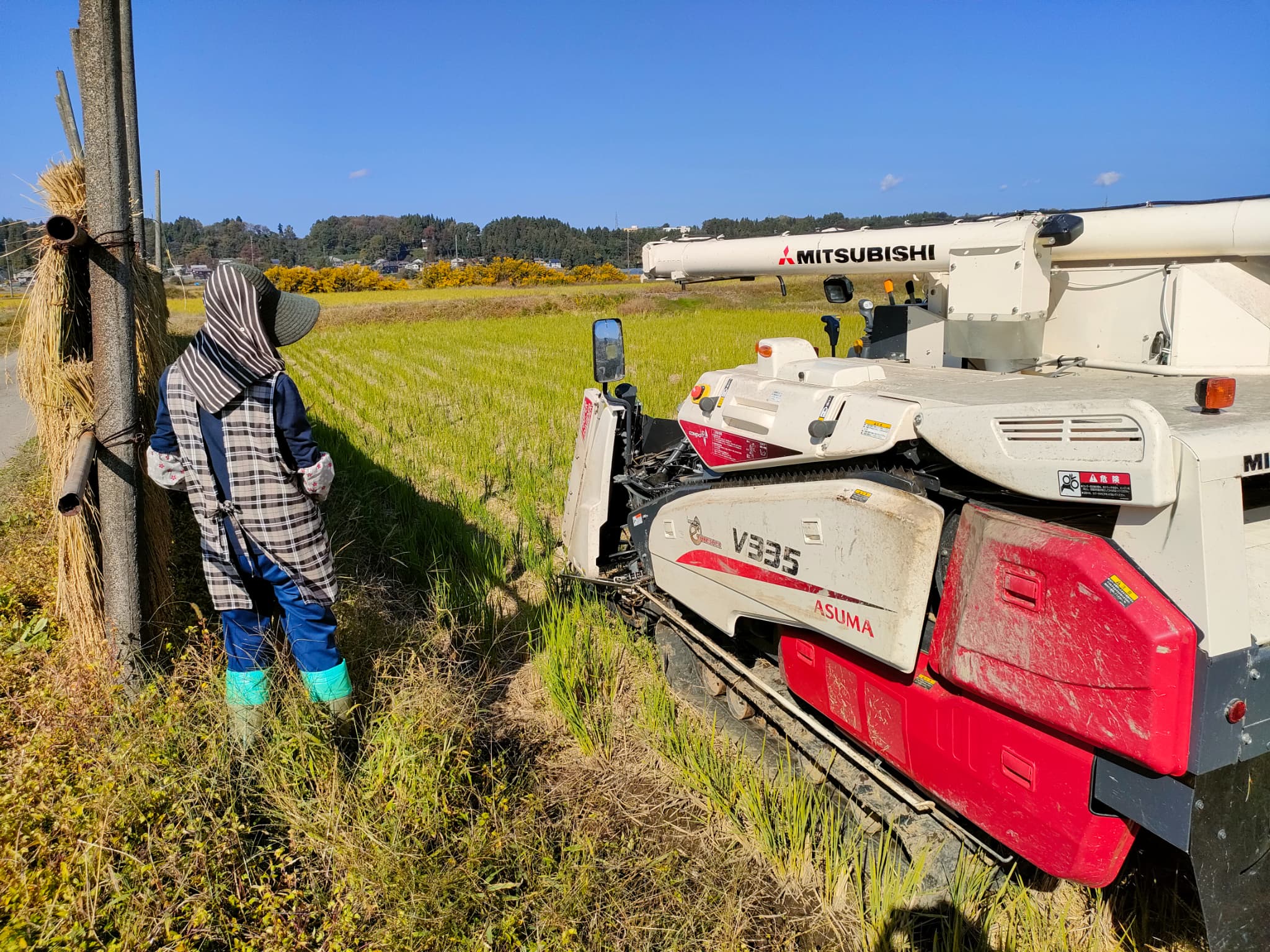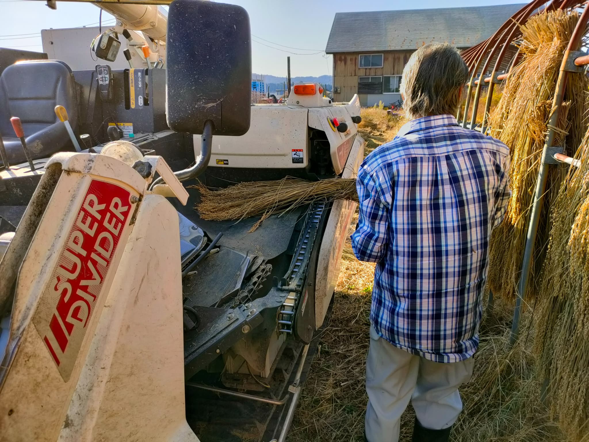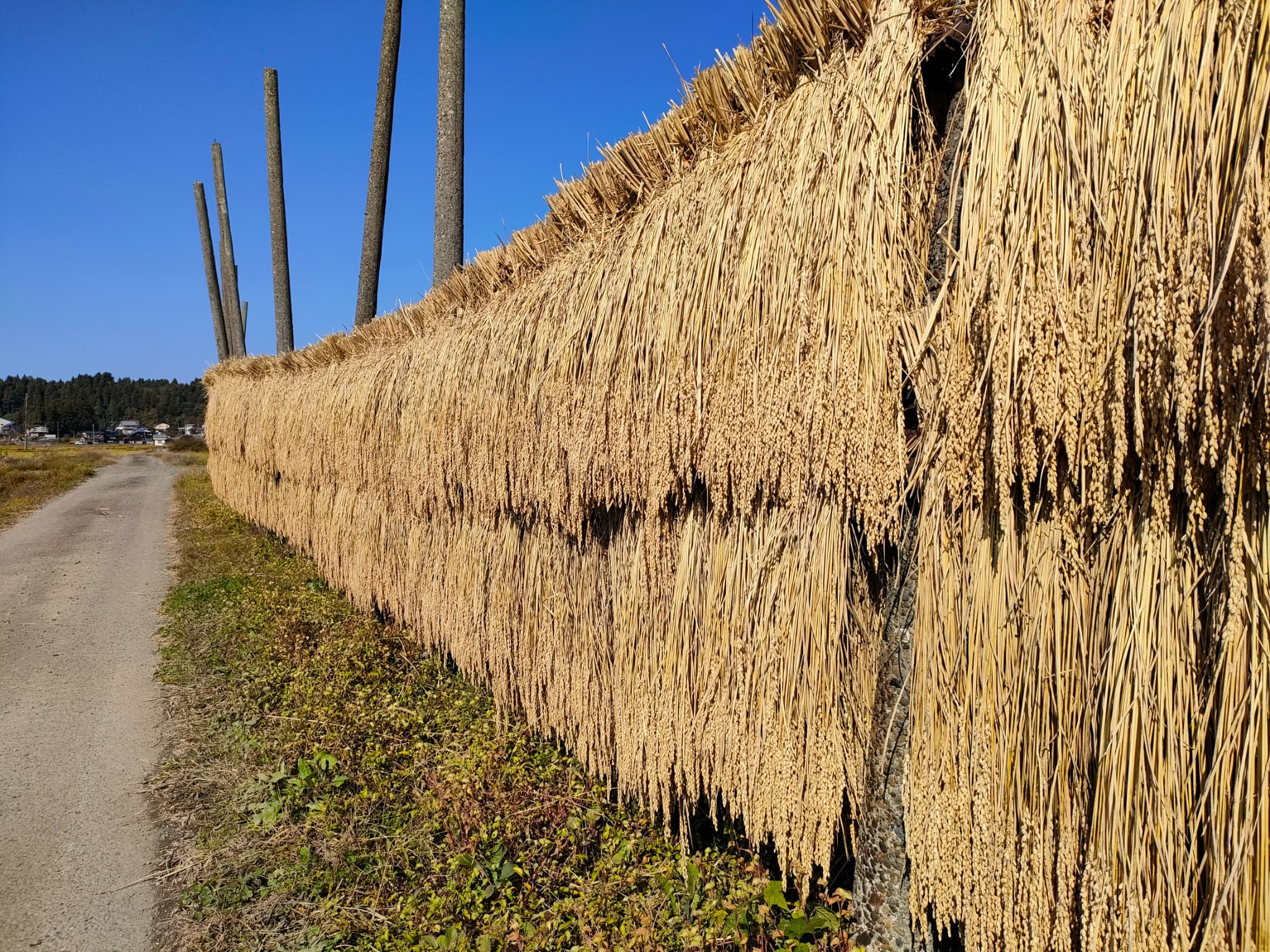 種籾用にハサ掛け天日乾燥しておいた稲。