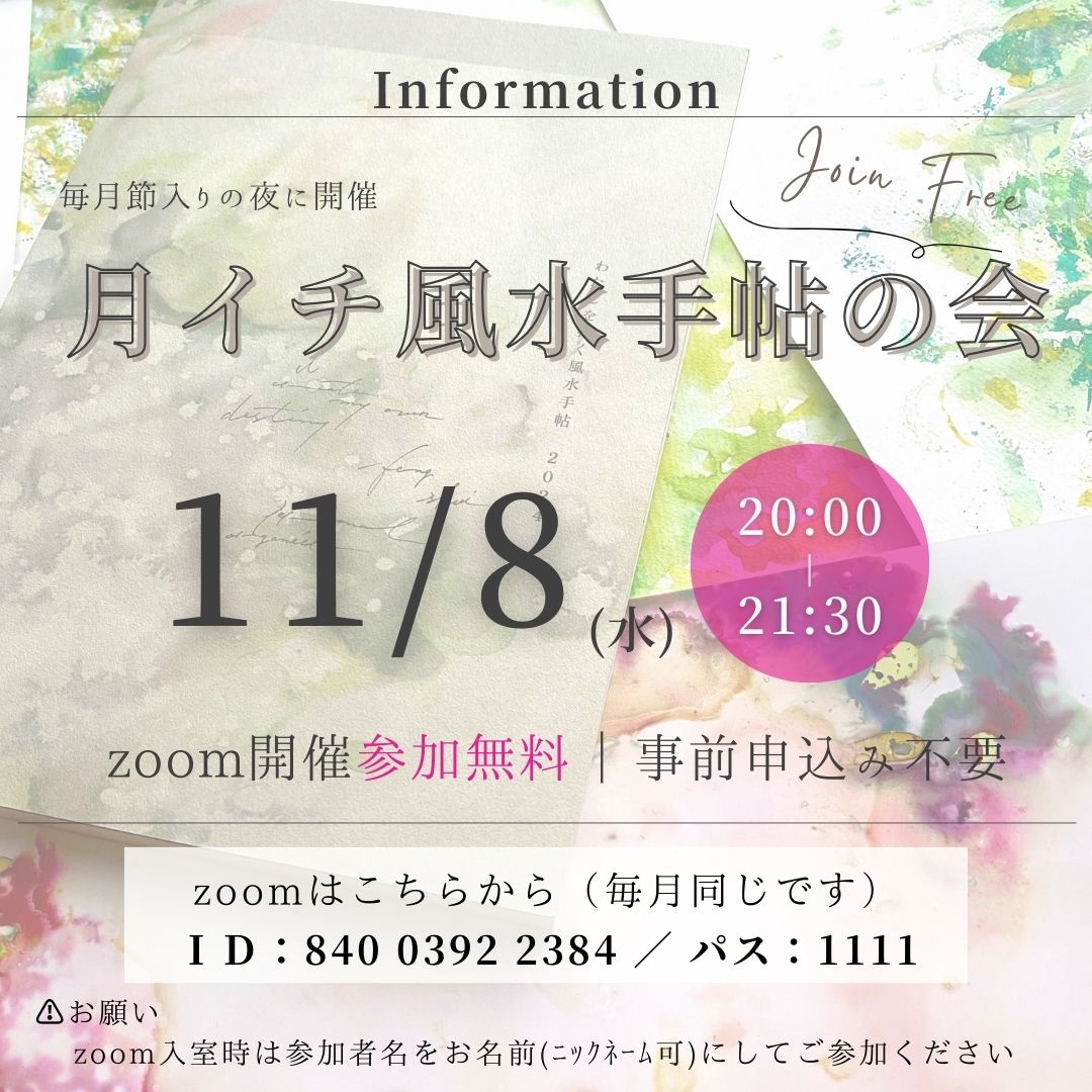 こちらは毎月節入り(※)に開催する『月イチ風水手帖の会』のお知らせです。