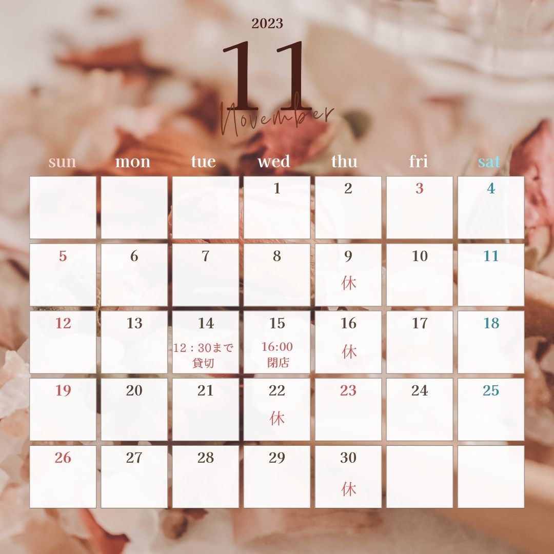 11月の営業日をお知らせいたします