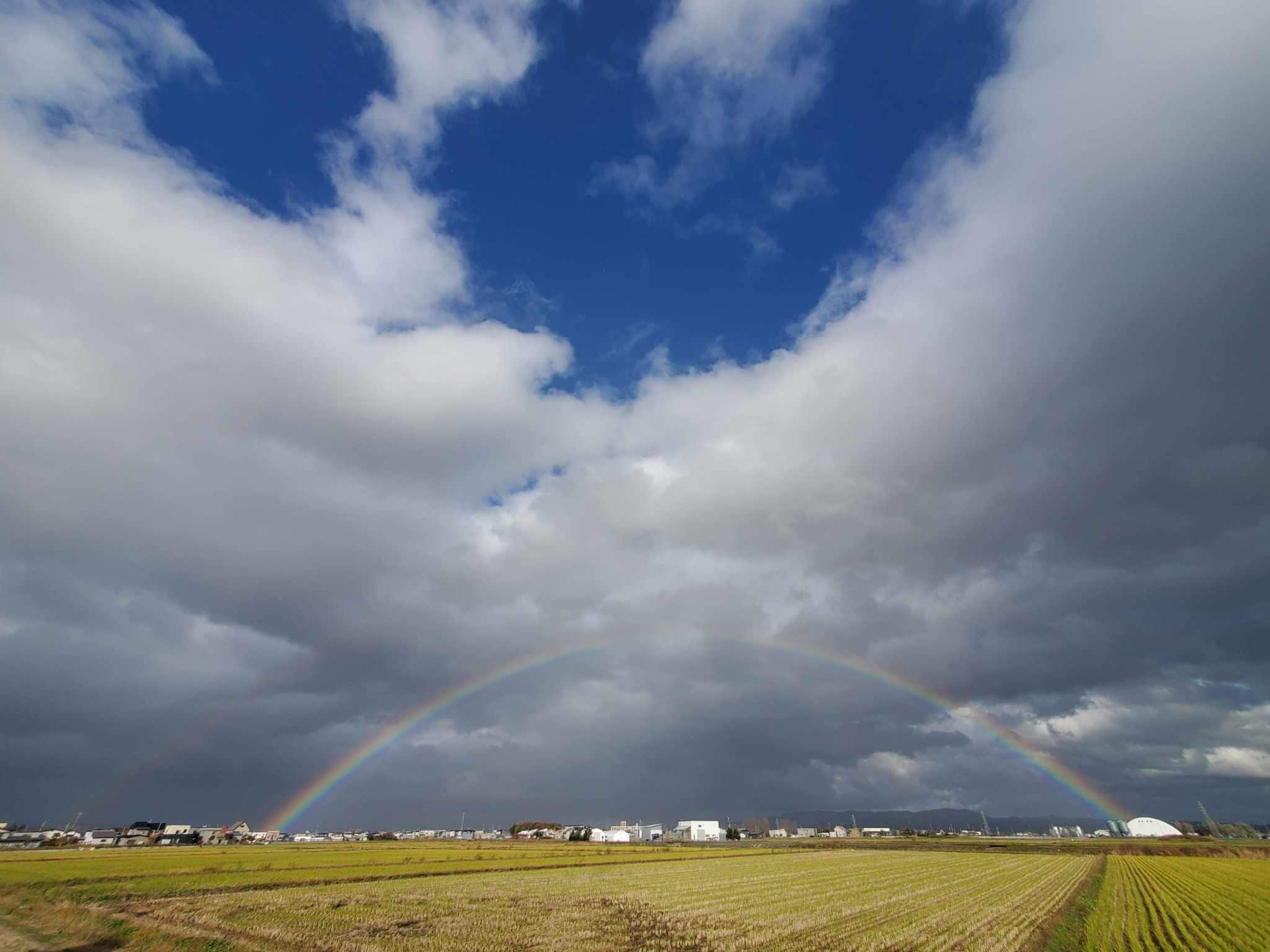目的地に近づいた頃に目の前に超絶濃厚な虹がかかっているじゃないですか。よーく見るとダブルレインボー🌈🌈