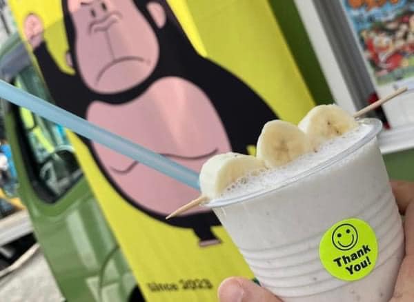 ゴリラも目を回すグルグルソーセージをメインに、バナナジュースの販売をしています。