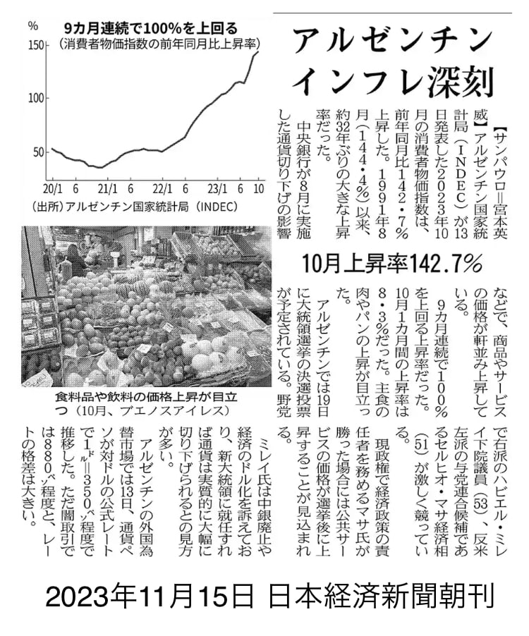 世界的に物価の上昇が続いていますが、アルゼンチンの消費者物価指数をみて驚きました!
