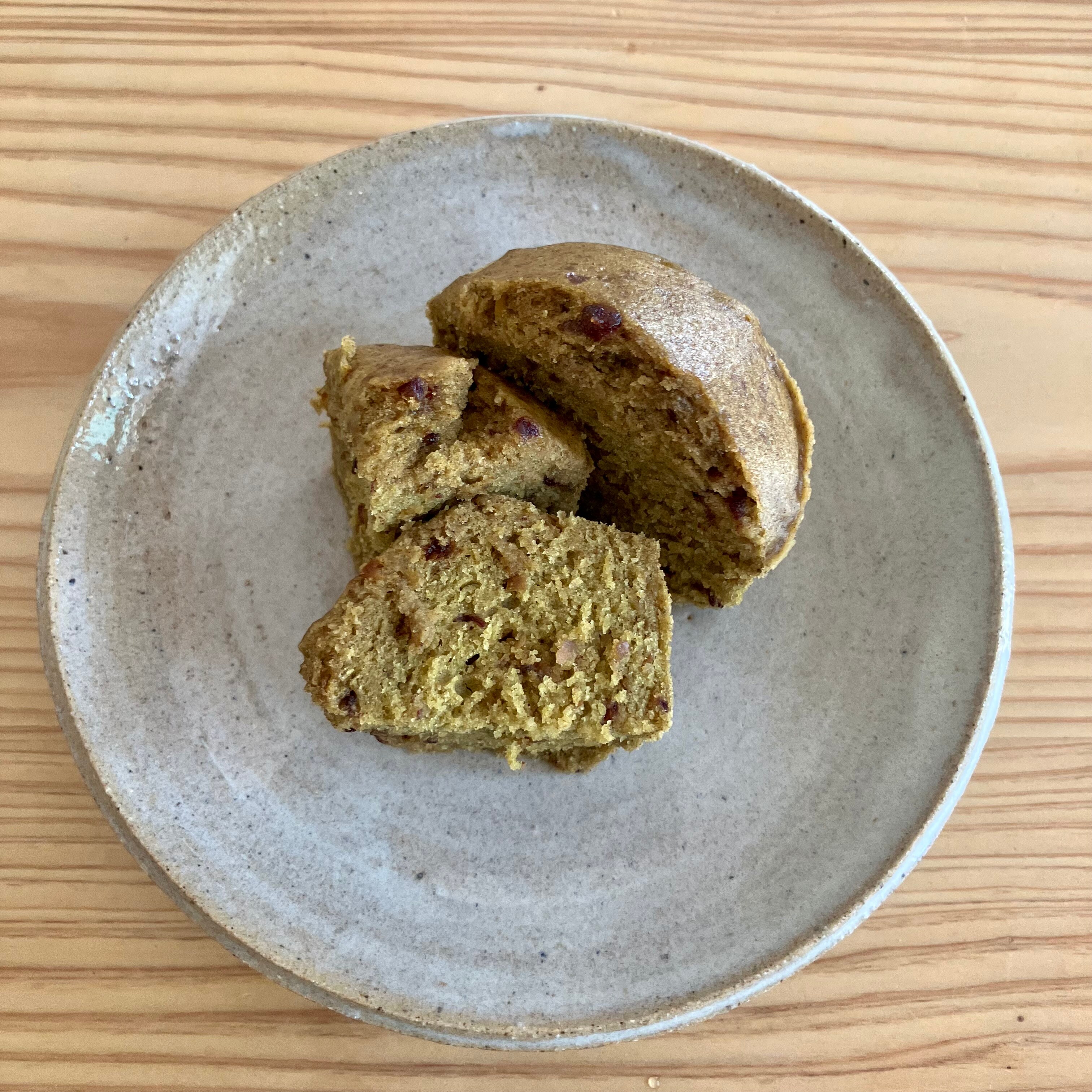 月桃パウダーが入ったことでグリーン色の蒸しケーキになりました(^^)