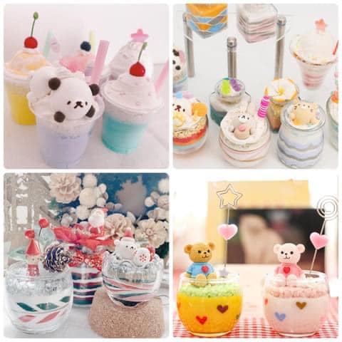 好きな色砂で模様を作って固めて、フェイクホイップとクレイパーツでもりもりデコレーションして完成☆