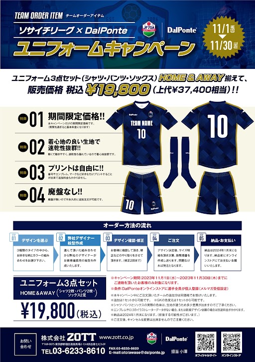 DalPonteユニフォームを身に纏い、ソサイチリーグを盛り上げよう!!!