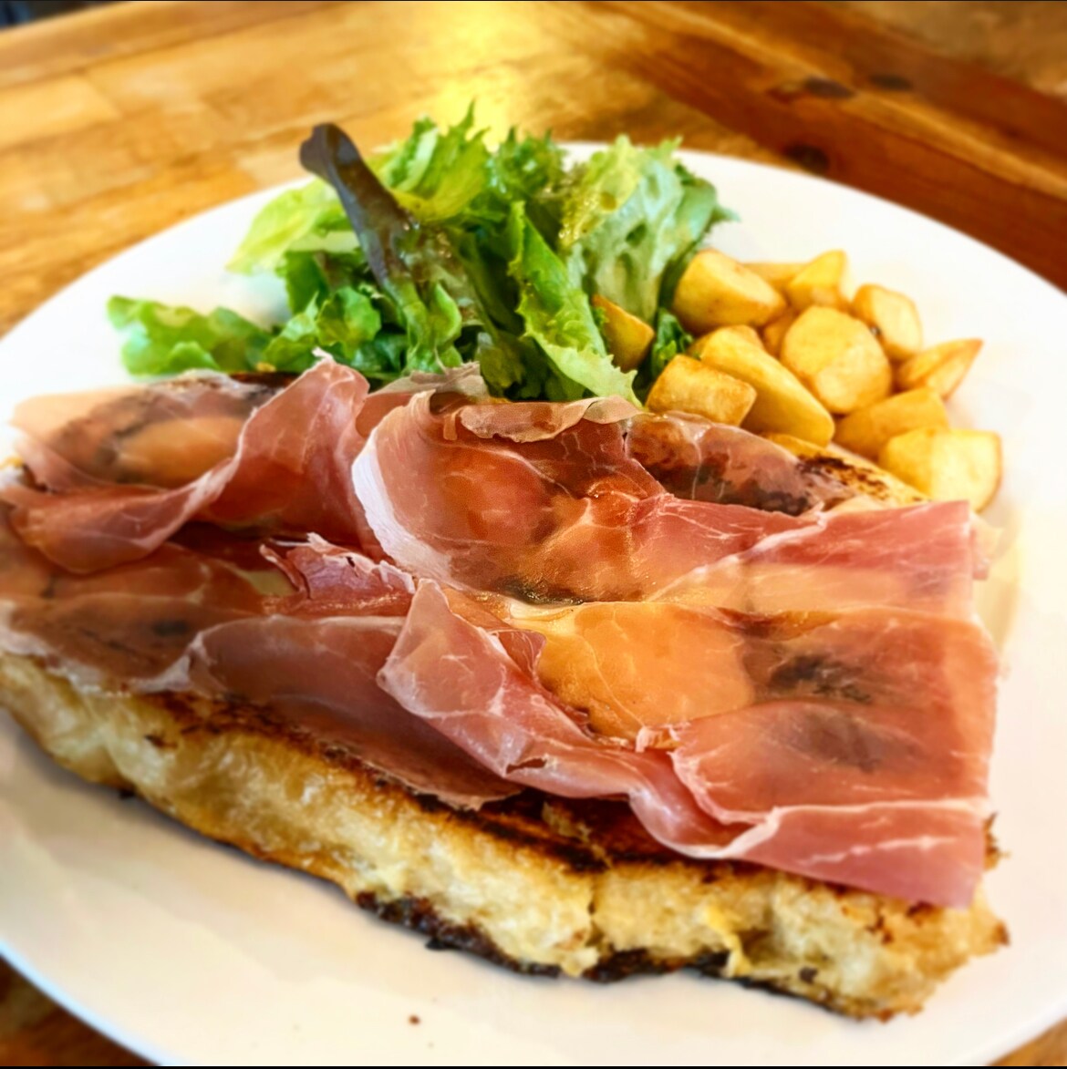 フレンチトーストの程よい甘さと生ハムの塩気がやみつきです😆