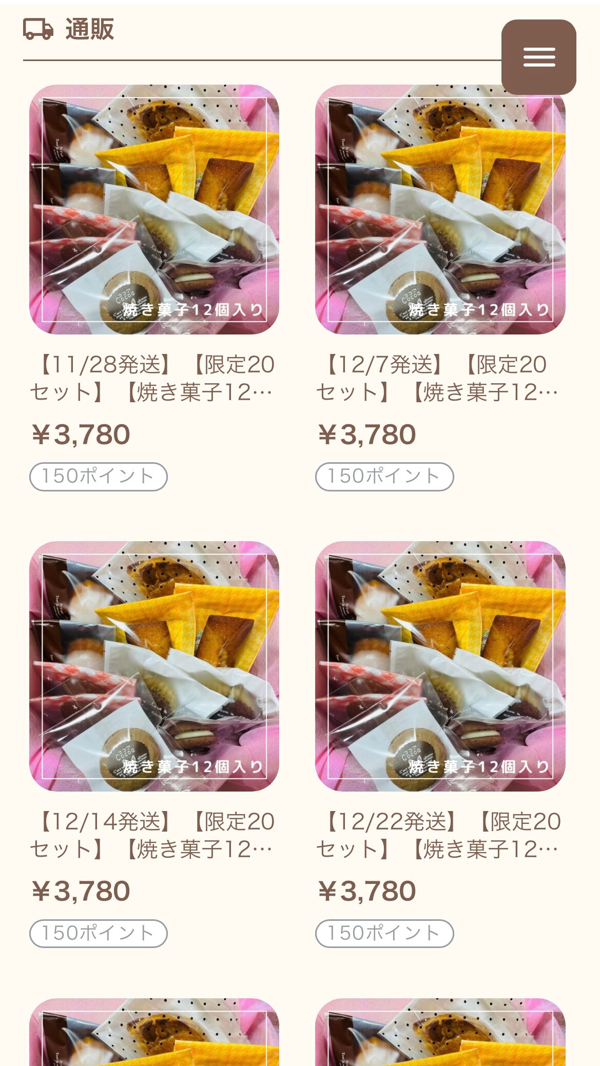 商品一覧を発送日ごとに掲載しました!