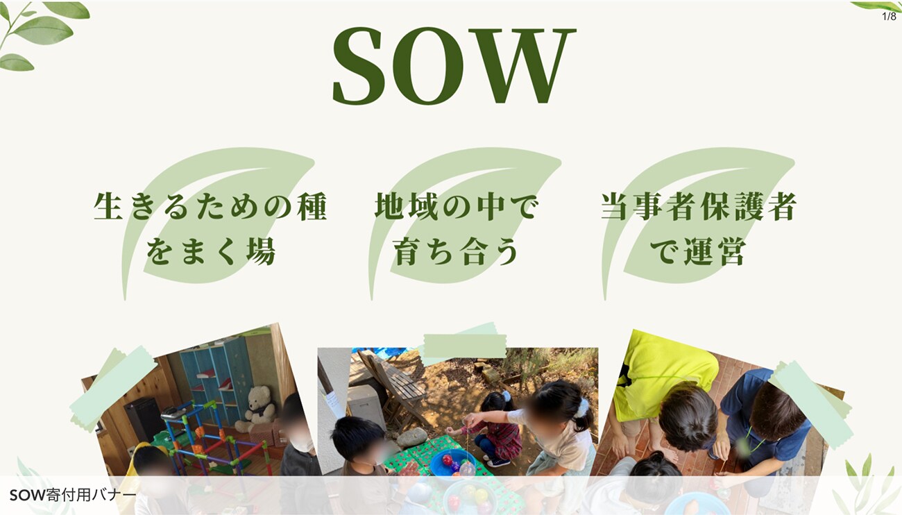 SOWは、不登校親の会「はなまといる」で出会った親たち6名で、「子どもも親も集まれる居場所を作ろう」と立ち上げた団体で、2021年3月21日に設立しました。