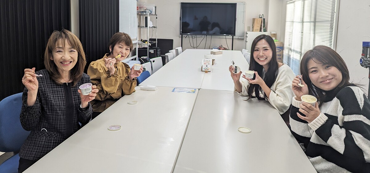 ランチ後に社長の差し入れ、さくらじまSUGAOジェラートで盛り上がりました♪