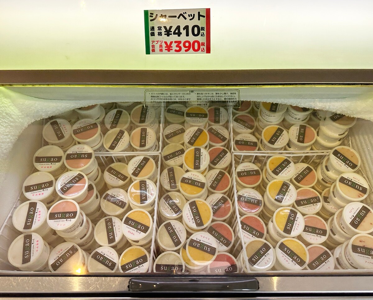 フルーツ&ジェラートのお店「さくらじま」の川添総一郎さんがまだ小学校に上がる前のこと。「果物屋を営んでいた父(現・社長さん)が『この新鮮な果物を子供も食べやすいように』と考え、安心安全な無添加のジェラートをつくりました。それが今のさくらじまSUGAOジェラートの始まりです」とお聞きしました。手に取って食べたお客様に「美味しい」と喜んで貰えるようプロの目線で美味しいフルーツを選び、こだわりの手作りジェラートを自社でつくっているそうです。