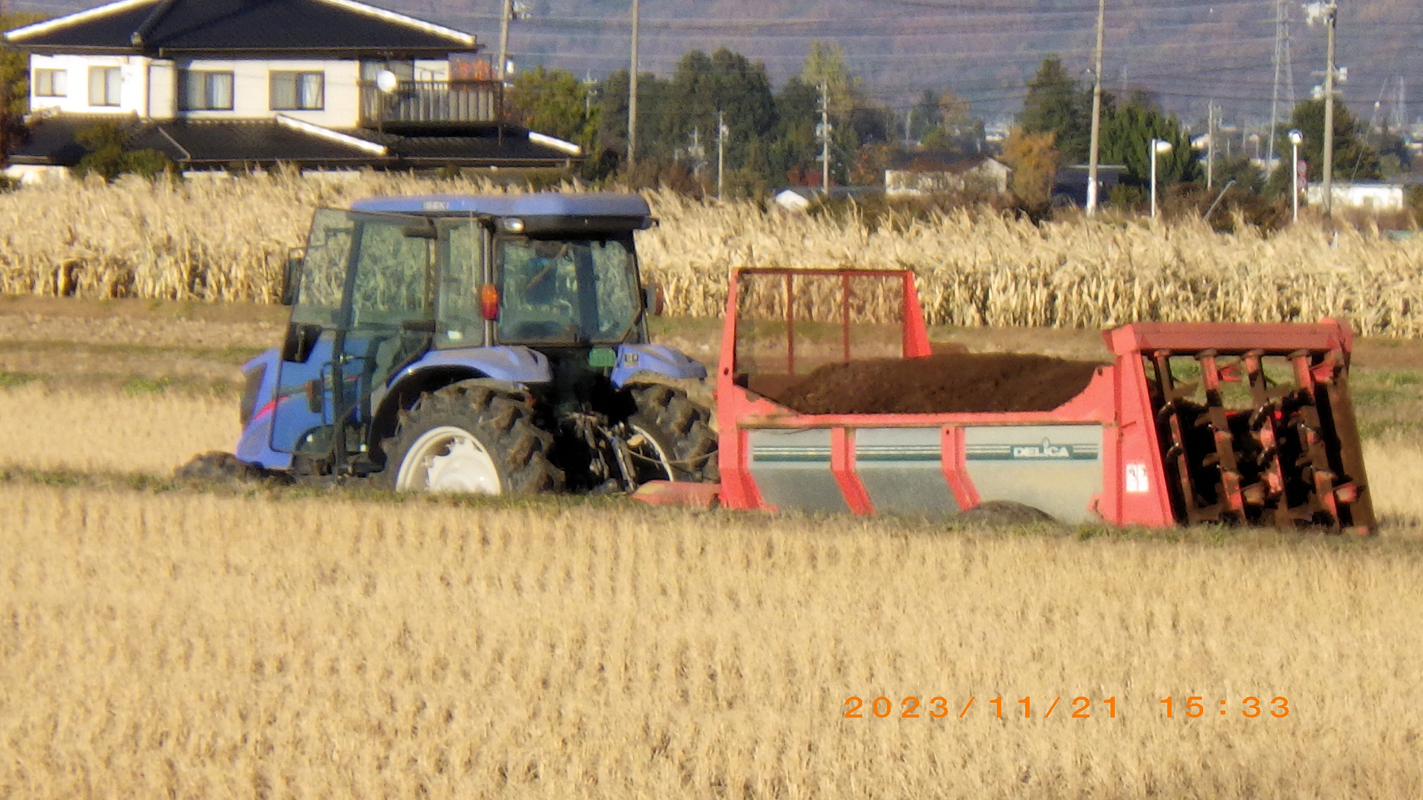 トラクターで起こします。