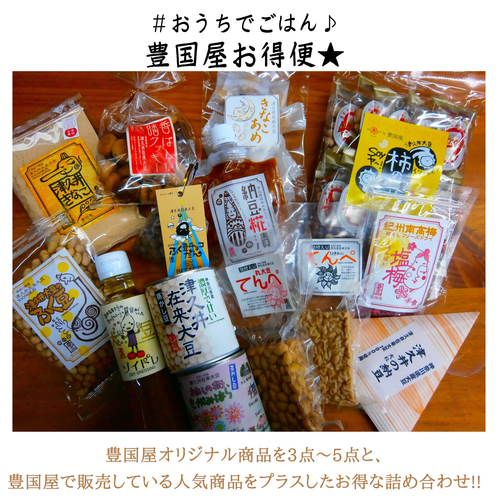 大豆が好きだけど何を選んでいいか迷っているアナタに、豊国屋の大豆商品をぜひ味わって頂きたくアソートボックスにしました♪