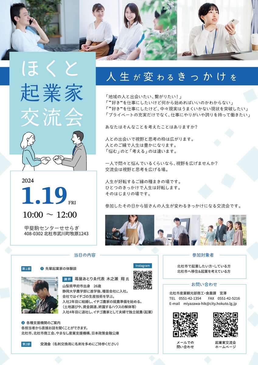 本日お申し込みスタート! 2024.1.19(金)ほくと起業家交流会♪
