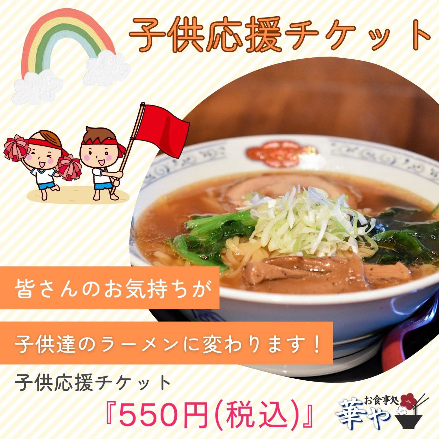 18歳未満の子供が張り出されている子供応援チケットを使うと無料で「華やラーメン(825円)」が提供されます。
