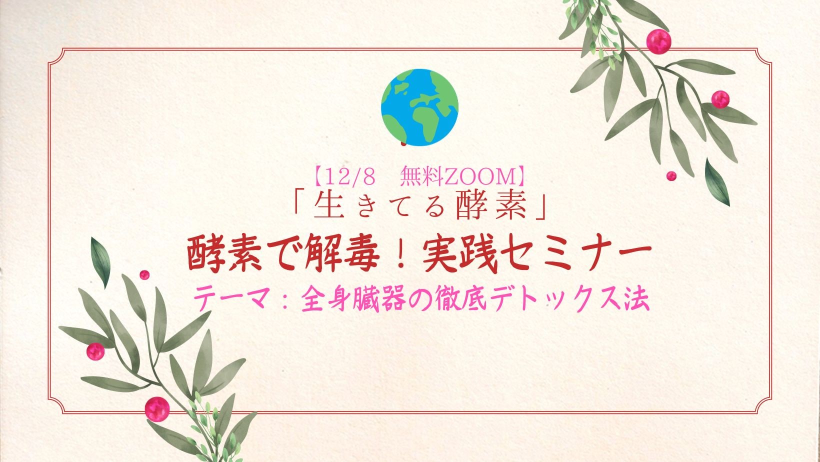 NEW【12/8 無料Z00M】「生きてる酵素」で子宮を癒す!実践法オンライン講座「全身臓器の解毒編」:講師 富元酵素 今本ひろ子 社長(ZOOM限定アーカイブ無し)