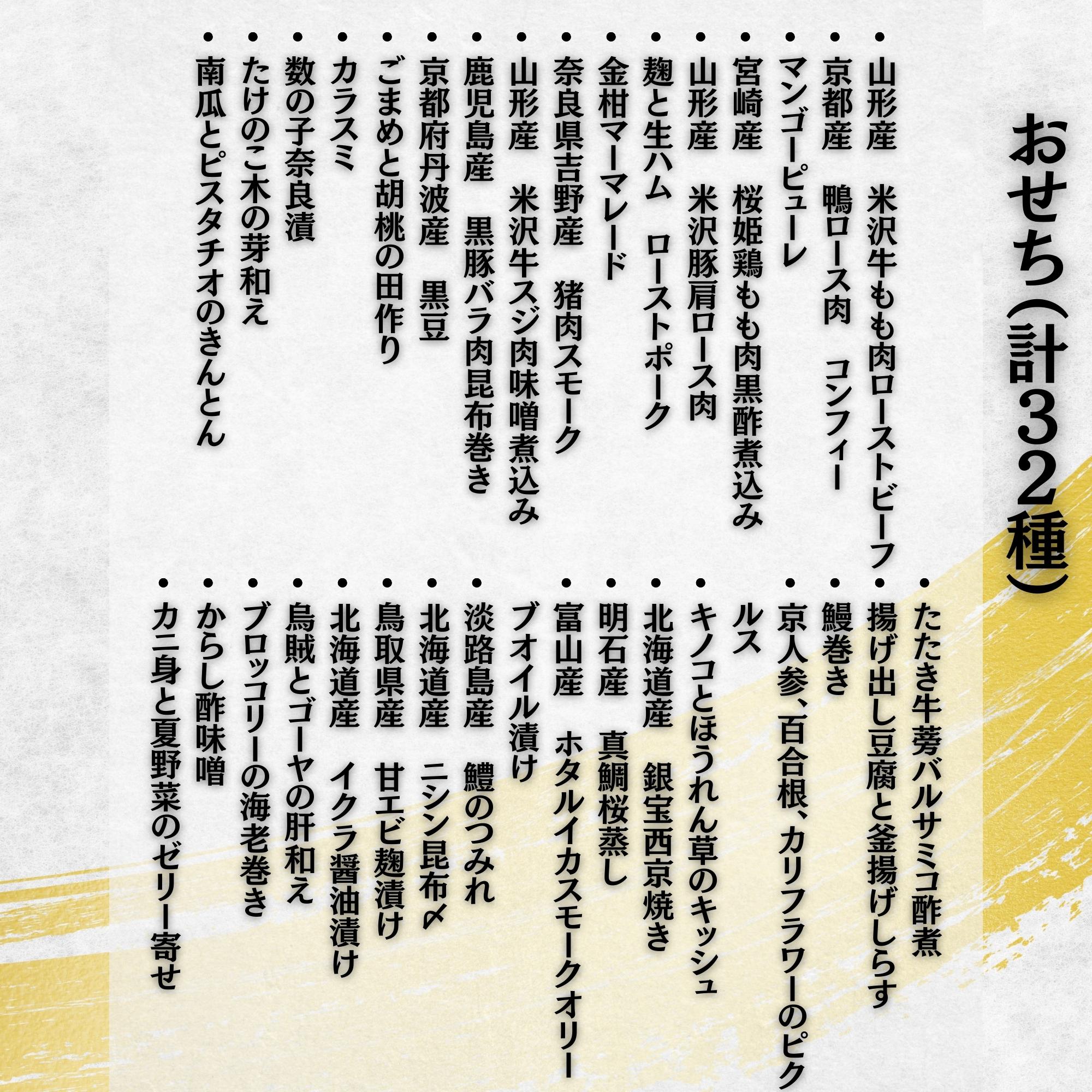 新年最初の御馳走、皆様のご多幸をお祈りし、一つひとつ真心込めて丁寧にお作りいたします。