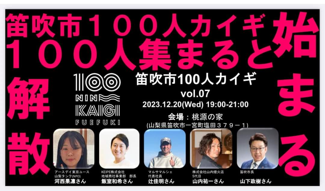 申込受付中! 12.20(水) 笛吹市100人カイギvol.07開催♪
