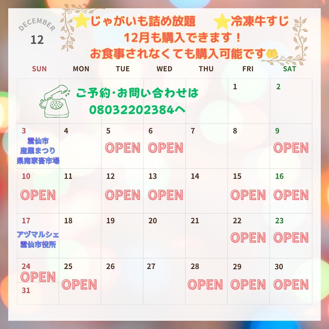 12月の営業日とイベントについて🐮