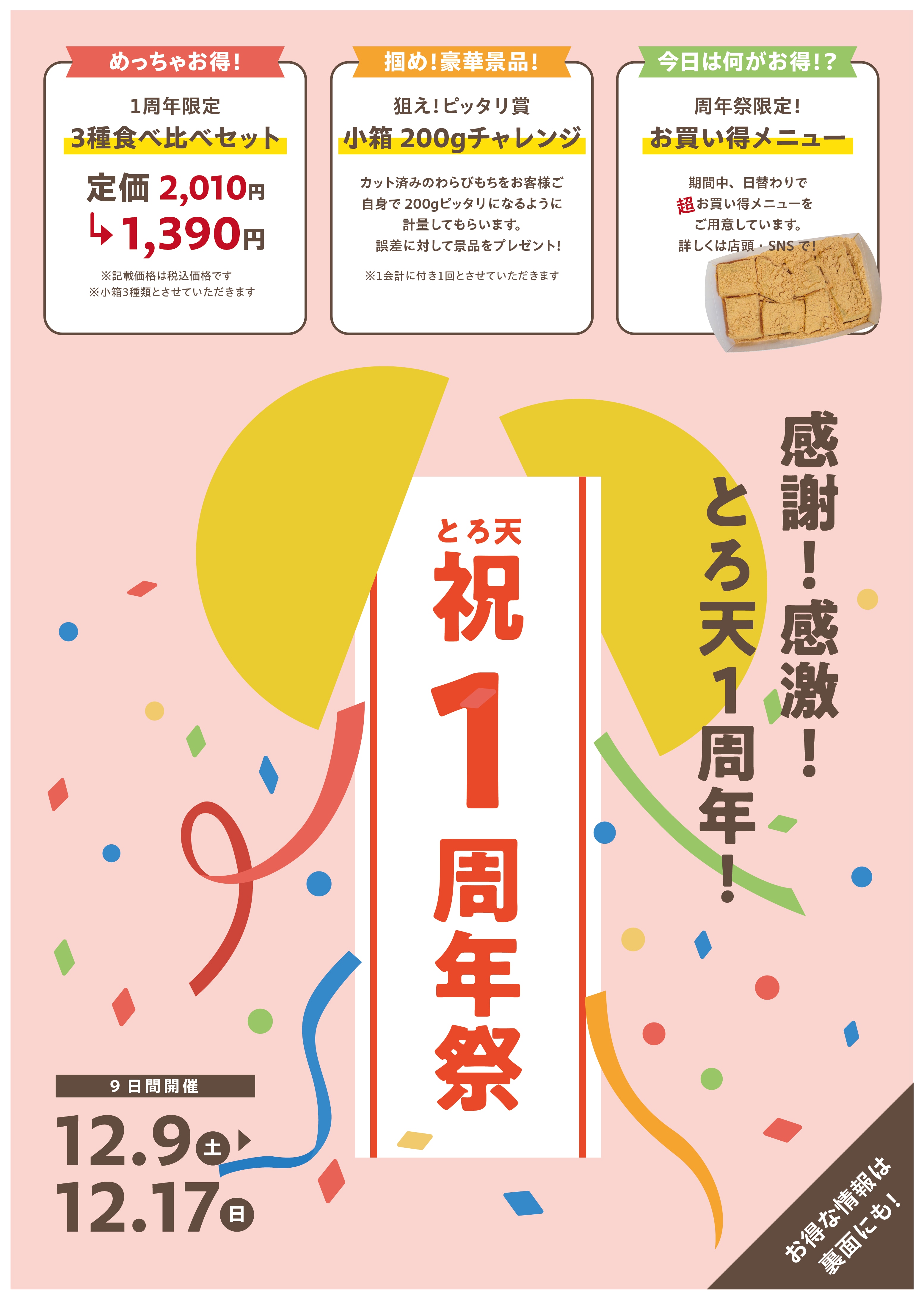 【とろり天使のわらびもち福知山店 1周年のお知らせ】