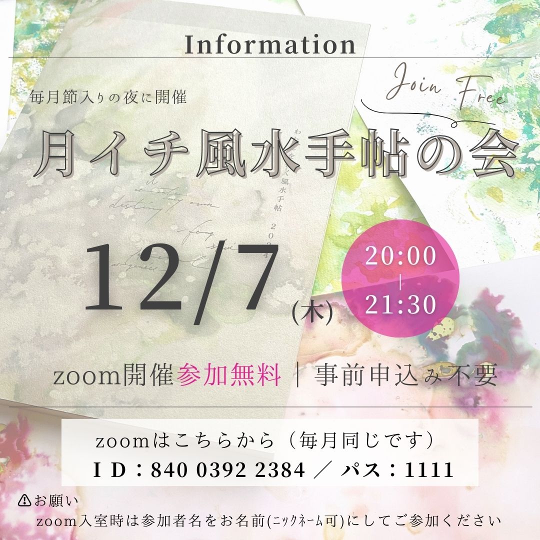 こちらは毎月節入り(※)に開催する『月イチ風水手帖の会』のお知らせです。