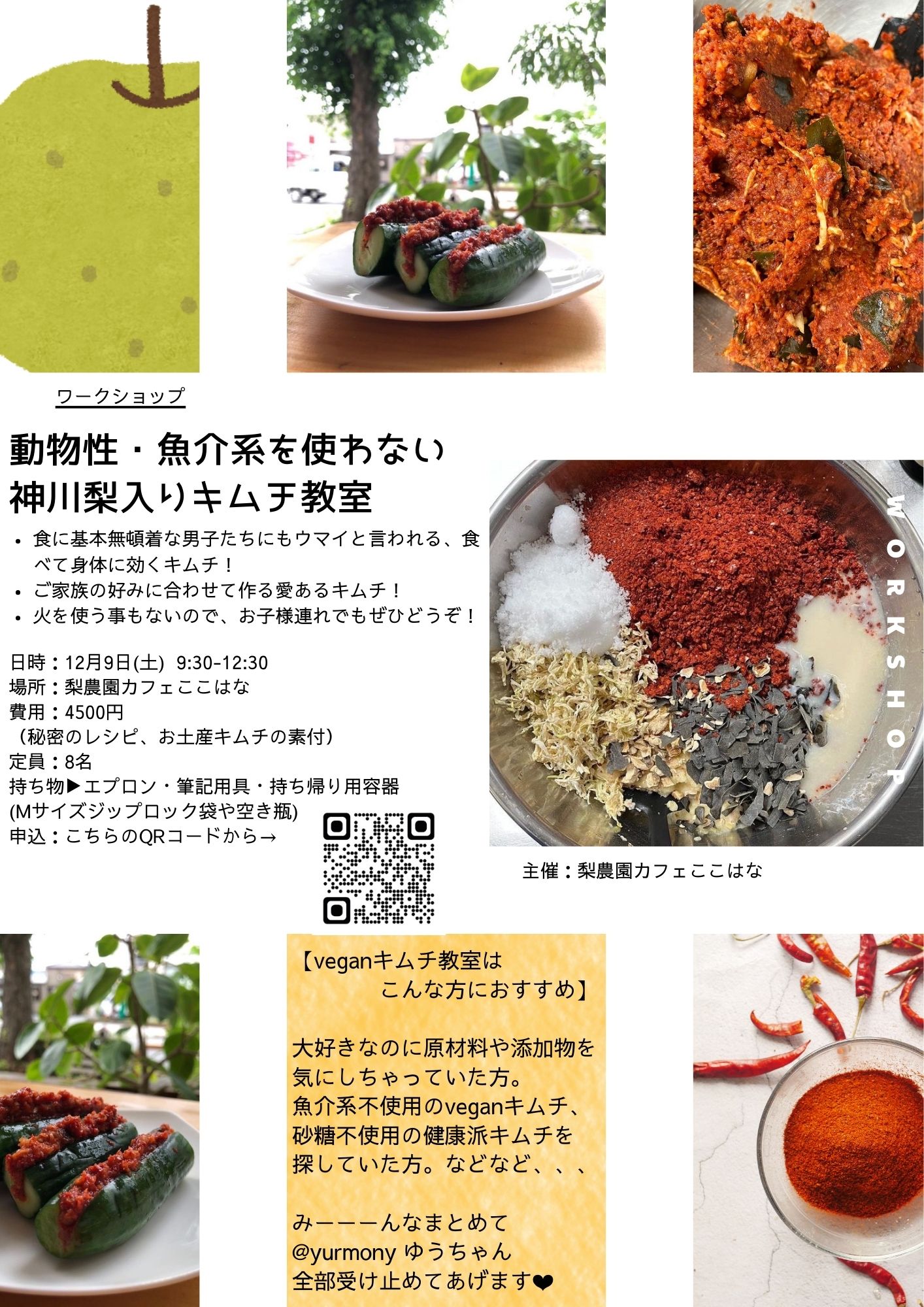 9日 9:30-12:00(神川梨キムチワークショップ開催中) ←この時間帯はカフェ営業しています。