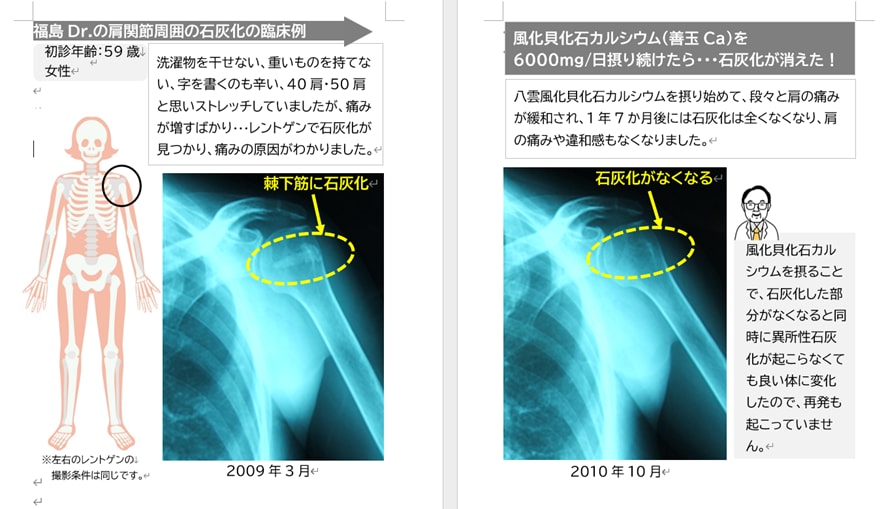 左肩にできた肩関節付近の割と大きな石灰化が