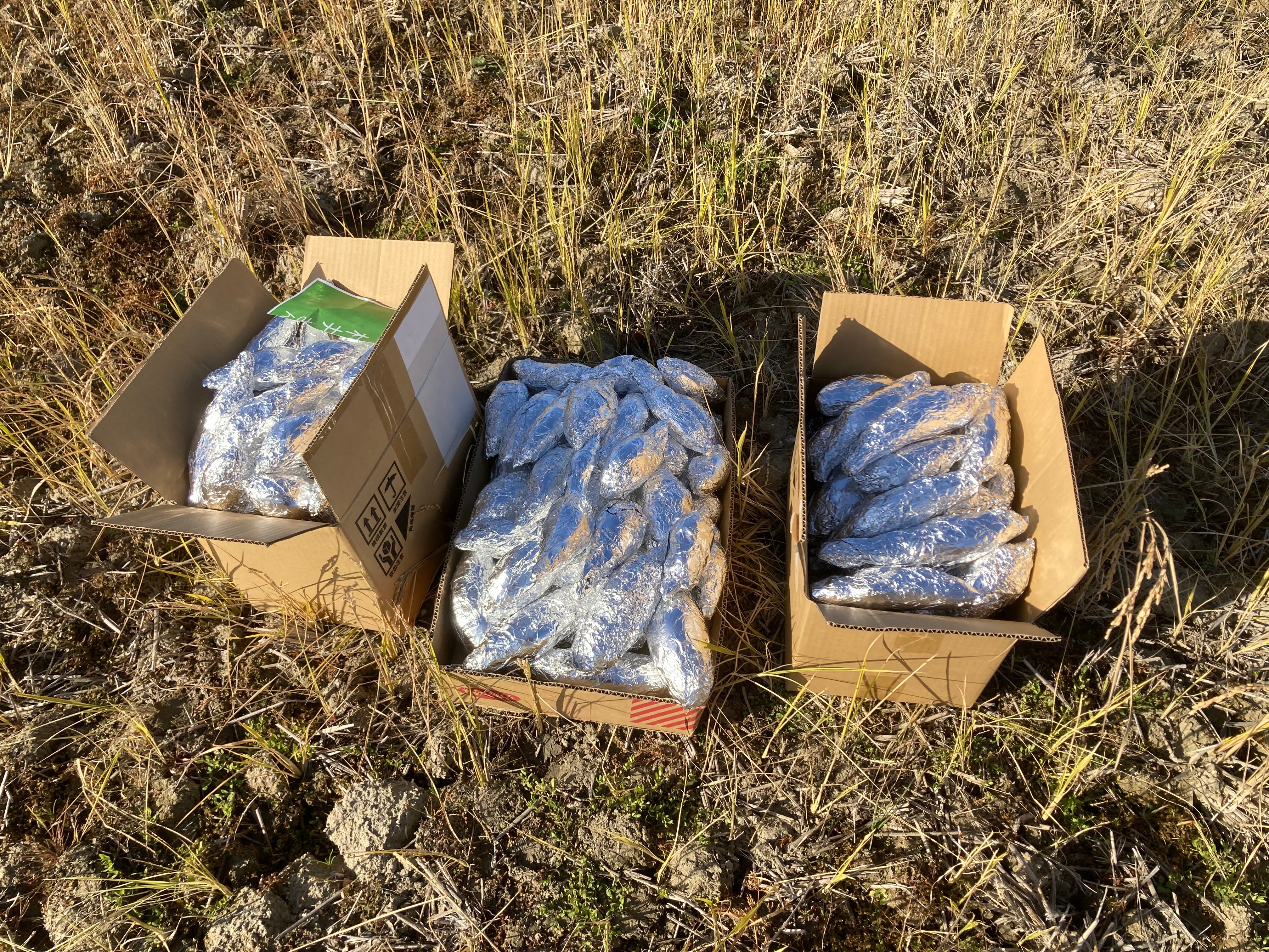 朝8時から、私の子供たちにも手伝ってもらって、10月に収穫したサツマイモを湿らせたキッチンペーパーにくるみ、その上からアルミホイルを巻いて約140本のサツマイモを準備しました。