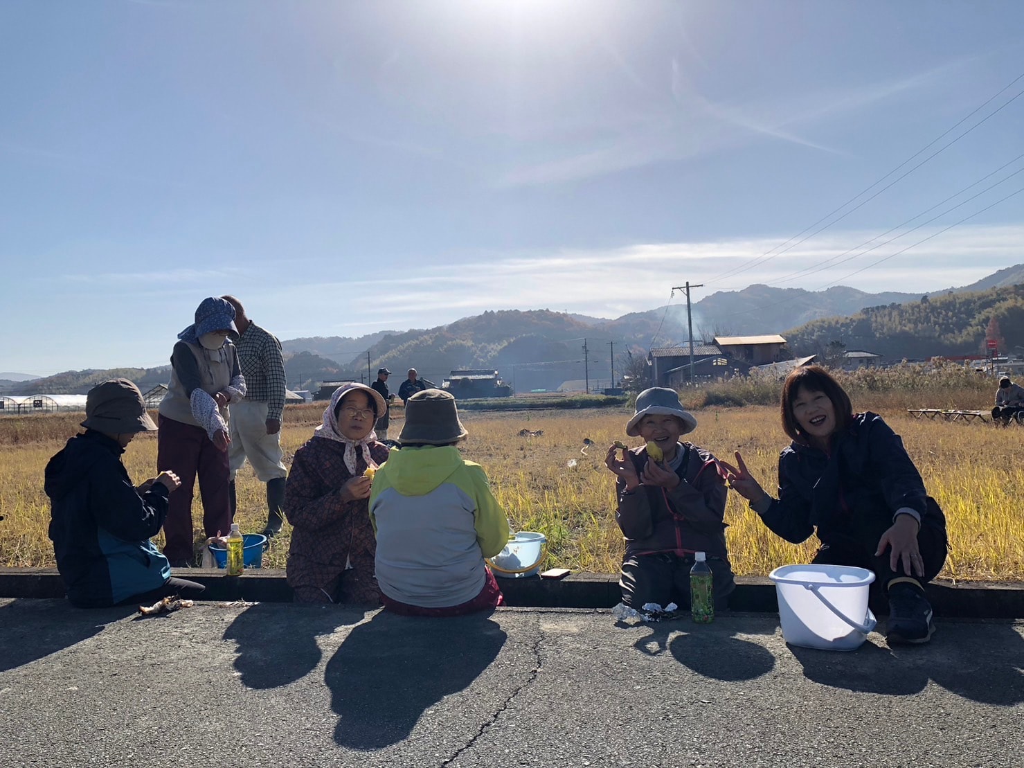 収穫体験後は、用意したジュースやお茶を片手にみんなで焼き芋を頂き、皆さんの喜ぶ笑顔を見れたことは、このイベントが成功したなと感じられた一時でした。