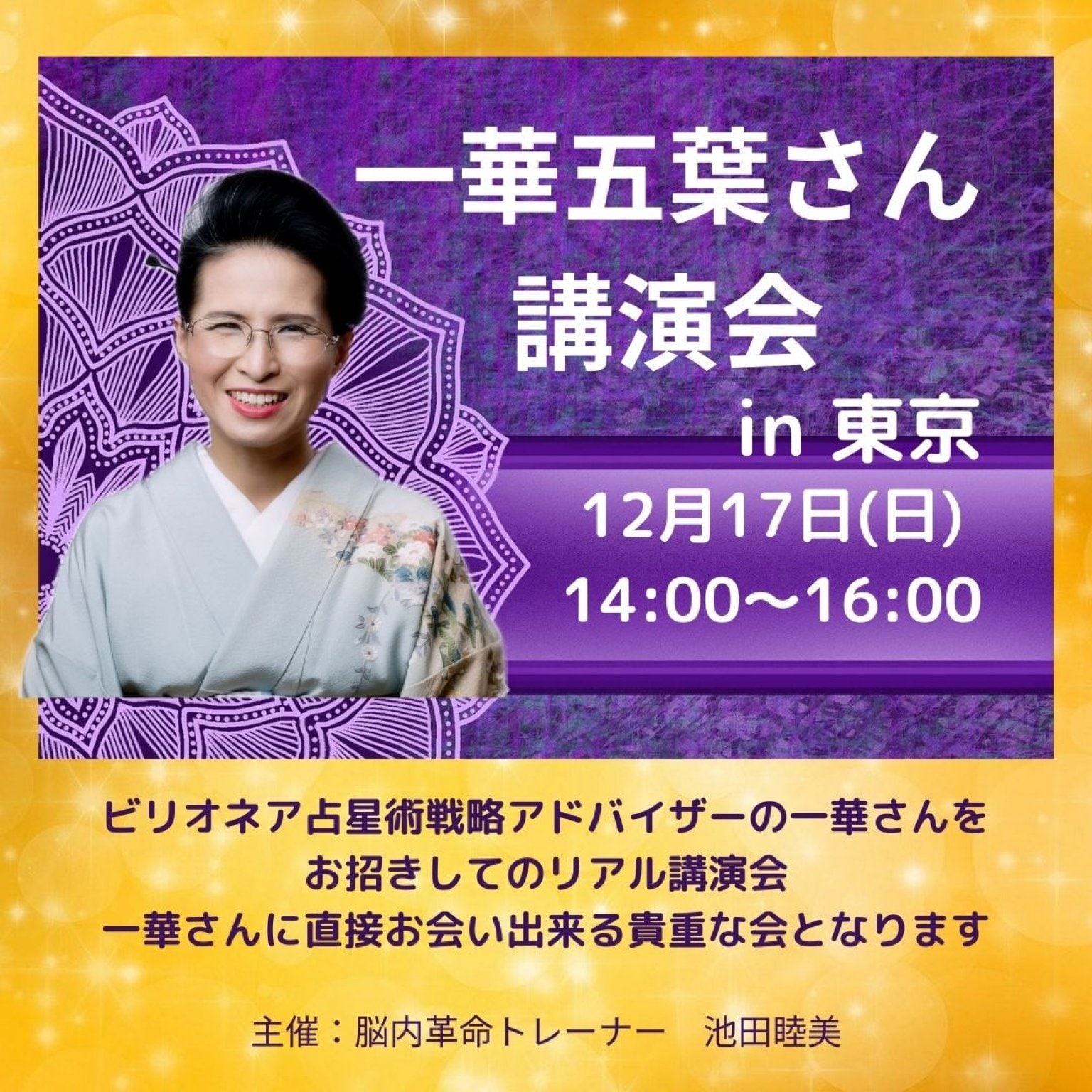 脳内革命トレーナー 池田睦美さんが 東京会場セミナーを主催しているのですが