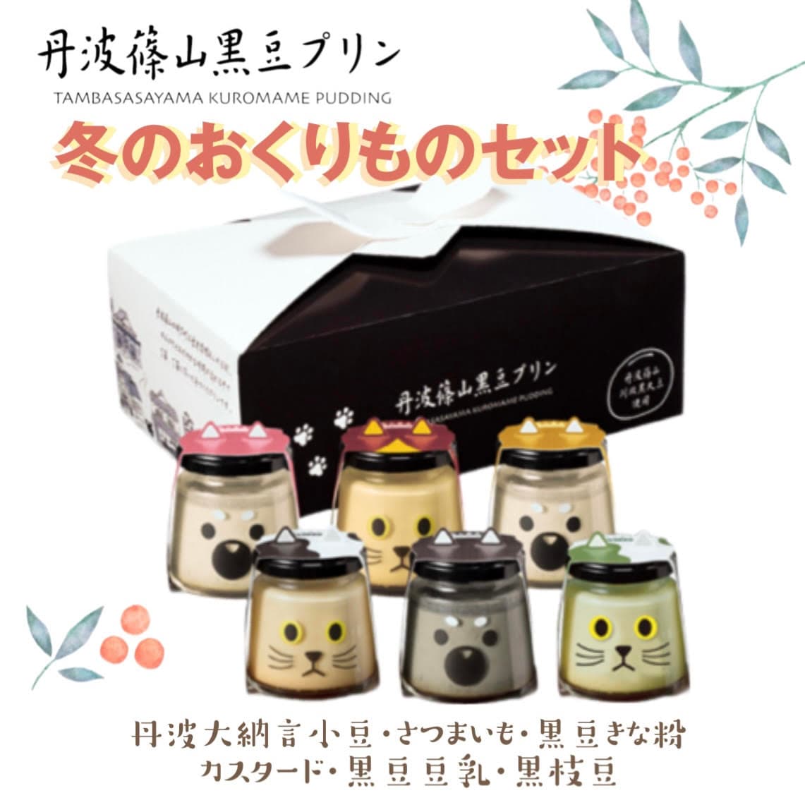 丹波篠山黒豆プリンで定番人気の、黒豆豆乳「クロちゃん」とカスタード「マメちゃん」に、今年新しく仲間入りした、さつまいもの「おいもちゃん」丹波黒大納言小豆の「あずきちゃん」黒枝豆の「みどりちゃん」黒豆きな粉の「きなこちゃん」が1つずつ入った6個セットでお届けします💫