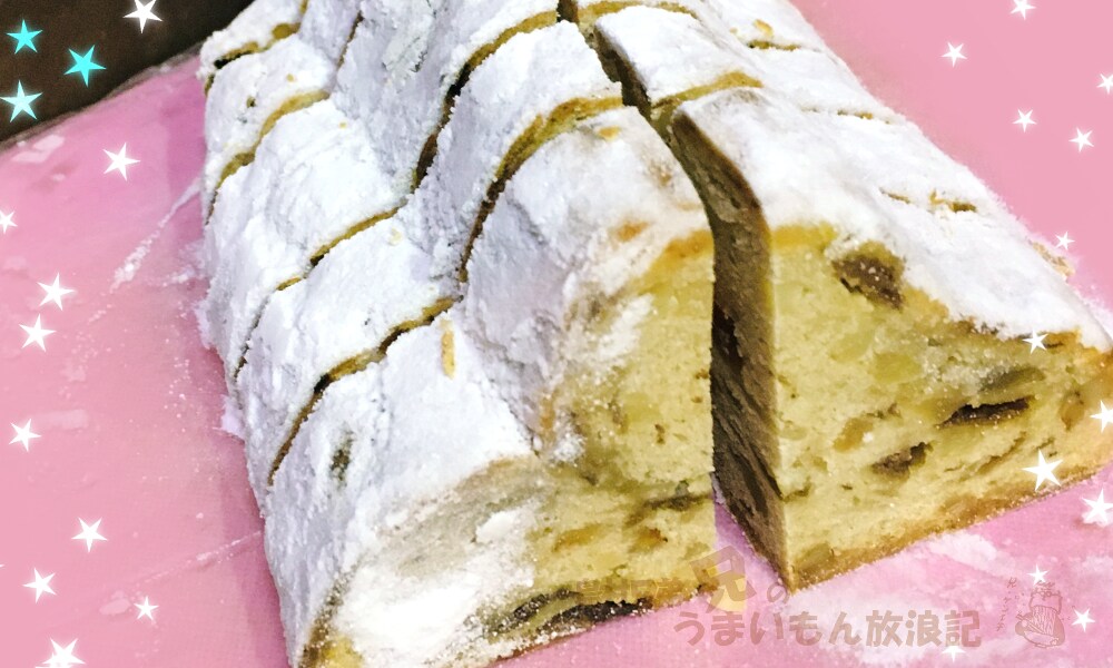 まずは「クリストシュトレン」から! (※スタッフで食べるため細かくカットしています) |