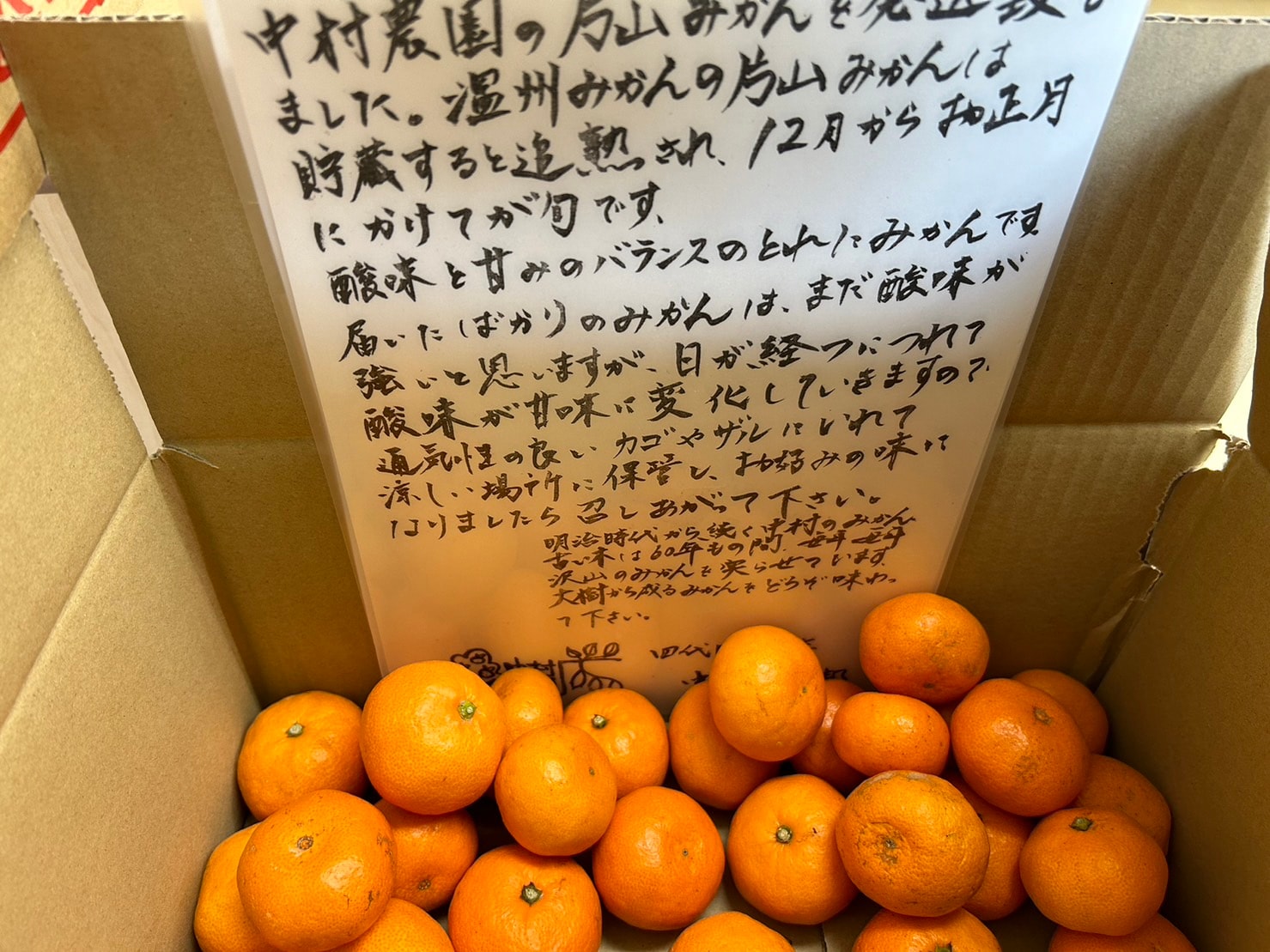 中村さんの農園では魚紛を肥料に混ぜて有機農法でみかんを作っています