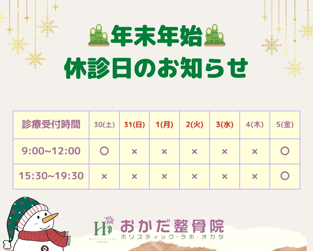 『おかだ整骨院の診療は12/30が最終日です!』