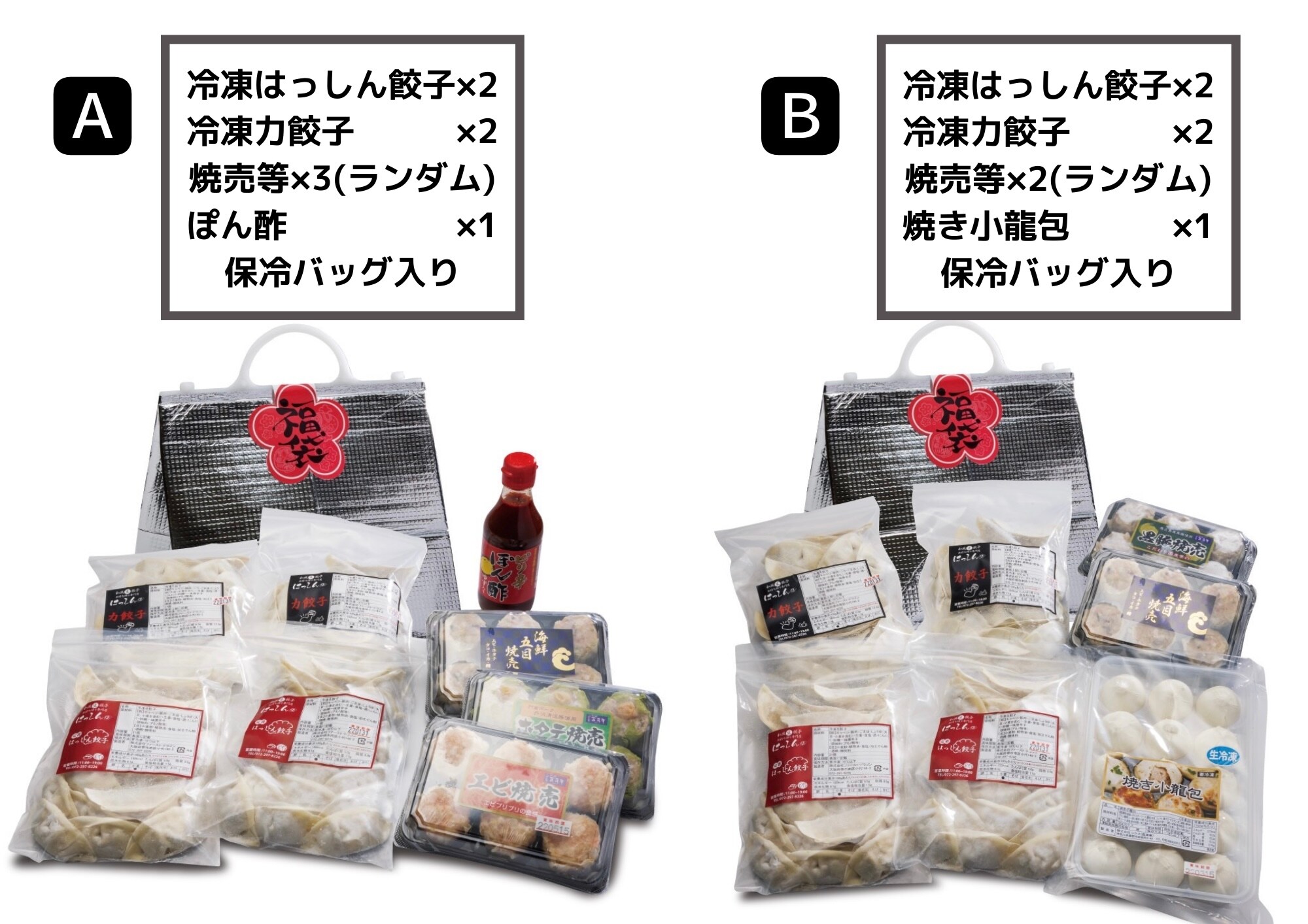 B冷凍はっしん餃子2袋、冷凍力餃子2袋