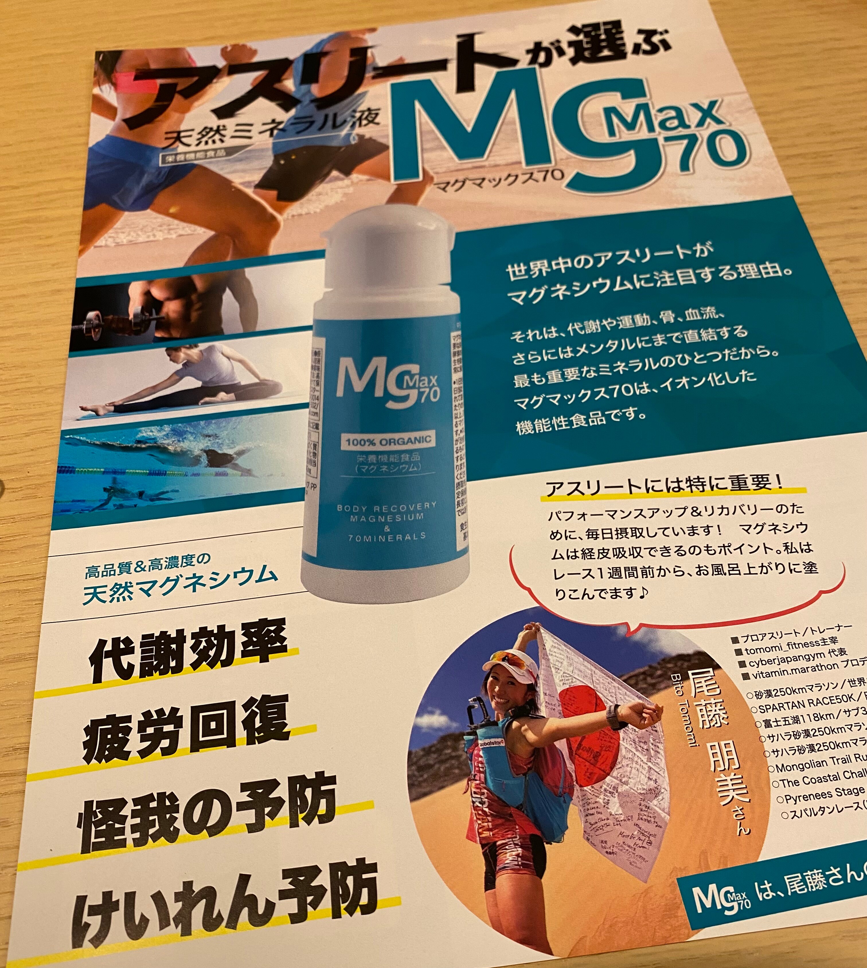 さっそく1/7ハイテクハーフマラソンのレースでは、参加者全員に、全面に尾藤さんが印刷されたMgMax70のフライヤー封入をさせていただきました。(こちらのレースには尾藤さんも出ますが、私もエントリーしてます^ ^)