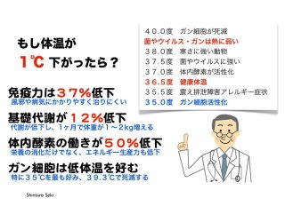 体温が35℃台の方は「この体温は癌細胞が好きな温度だ」ということを認識していてくださいね。